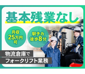 <横浜市鶴見区>月収25万円可☆物流倉庫でフォークリフト業務◎駅チカ徒歩8分♪基本残業なし!経験活かせる!【履歴書不要☆オンライン面接OK】【入社キャンペーン実施中!】