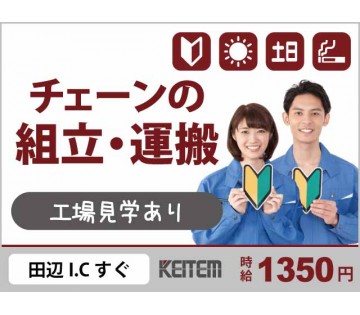 【20代,30代活躍中】【ドライブチェーンの製造】20~40代活躍中/未経験歓迎/働きやすい日勤&土日休み/組立/機械の操作/車・バイク通勤OK/月収25.1万円