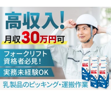 【月収30万円可】フォークリフト資格者必見!乳製品のピッキング・運搬作業♪実務未経験OK