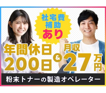 【3勤3休×年休200日】月収27万円可×社宅費補助有♪大手メーカー!プリンタートナーの製造OP・梱包◎空調完備