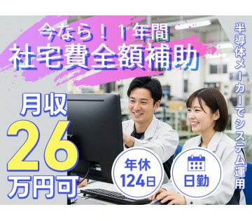 <四日市市>【今なら!1年間☆社宅費全額補助】月収26万円可◎半導体メーカーでシステム運用・保守など◆日勤&土日祝休み【履歴書不要☆オンライン面接OK】【入社キャンペーン実施中!】
