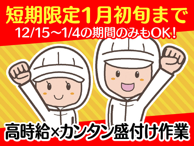【期間限定】12月中旬~1月初旬までの短期募集♪お惣菜盛付の簡単ライン作業!勤務日数相談可!短期バイトをお探しの方はお気軽にご応募ください♪