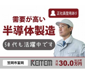 【半導体の製造】20~50代半ばが活躍中/需要の高い半導体作りで正社員を目指そう/月給27~30万可/経験不問/2交替/4勤2休/月収27万円
