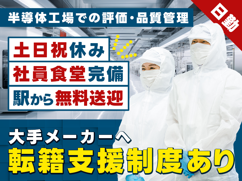 <大阪市住之江区>【日勤&土日祝休み】半導体工場で評価・品質管理のお仕事♪PC操作あり★年休122日★駅から無料送迎!【履歴書不要☆オンライン面接OK】【入社キャンペーン実施中!】