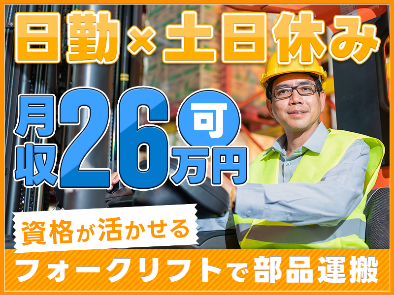 <上尾市>祝金総額12万円★日勤&土日休み!月収26万円可♪大手トラックメーカー!カウンターフォークリフト運搬☆資格が活かせる【履歴書不要☆オンライン面接OK】【入社キャンペーン実施中!】