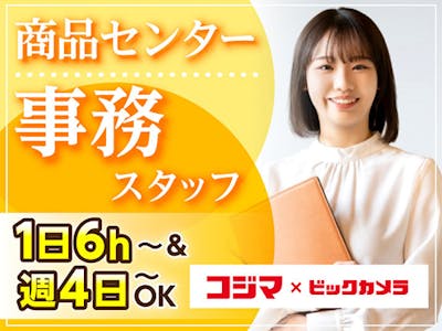 <コジマ・東松山商品センター事務>【家庭・子育てと両立できる!】1日6h~・週4日~OK!30・40代活躍中!安定して長く働けます♪昇給・有給・家電の社員割引有
