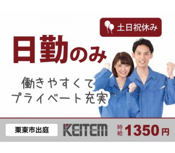 滋賀県栗東市最寄り駅:草津駅アクセス:勤務詳細:栗東市通勤方法:徒歩/車/自転車/バイク最寄り駅:草津駅から車9分※構内の(無料)駐車場利用OK