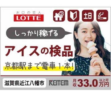 【ロッテのアイスやお菓子の検品・材料準備】京都駅まで電車1本の好立地/家具家電付き1R寮費無料/土日休み/社員食堂あり/月収33万円
