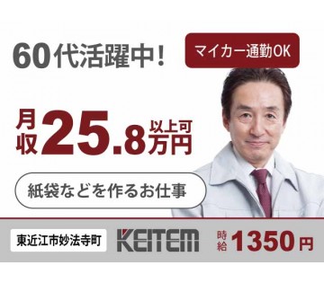 【紙袋の検査、梱包、製造補助】20~50代活躍中/2交代勤務で月収25.8万円以上可/遅番も日付を超えない22時まで/紙袋の目視検査、梱包、運搬作業/工場初めての方も大歓迎/月収25.8万円