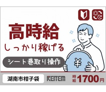 【20代,30代活躍中】残業0 【シートの巻取り】 20~30代活躍中/4日毎に2連休でリフレッシュ/実働7時間/長期休暇年3回/月収27.3万円