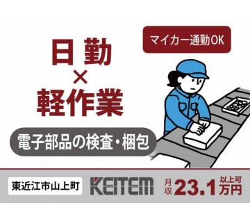空調完備 【電子部品の検査】 20~40代活躍中/重い物ナシの軽作業/日勤のみで土日祝休み/長期休暇あり/月収23.1万円以上可