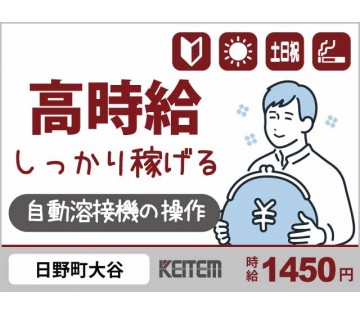 日払い対応可 【自動溶接機の補助】 20~50代半ば活躍中/自動で溶接する機械のサポート/土日祝休みの日勤/建築部品の製造/月収26.4万円