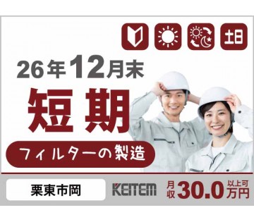 【大量募集】★短期×高時給1650円★未経験OK!日勤/土日祝休@草津市