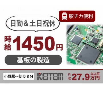 日払い可 【基板の組立加工】 20~40代活躍中/時給1450円の駅チカ工場/土日祝休みの機械操作/経験者歓迎/月収27.9万円