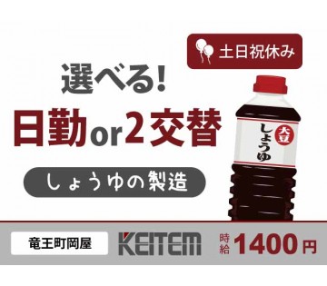 【醤油の製造(袋詰め・梱包など)】未経験OK/選べる日勤or2交替/土日祝休み/女性活躍中/月収27.9万円