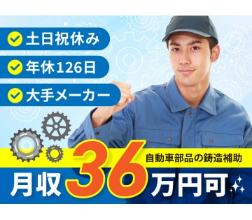 【月収36万円可】未経験OK!土日祝休み&年休126日◎大手メーカー☆自動車部品の鋳造補助【履歴書不要☆オンライン面接OK】【入社キャンペーン実施中!】