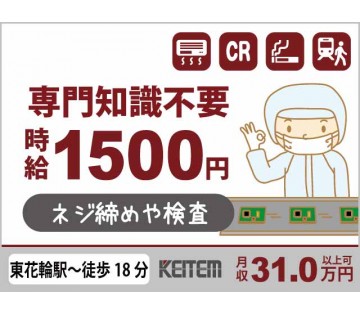 【20代,30代活躍中】職種未経験OK 【電子部品の製造】 20~40代活躍中/ティッシュ箱サイズで難しい操作なし/4日毎に2連休の空調完備/東花輪駅から徒歩圏内/月収31万円可